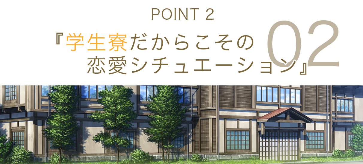 寮での共同生活は、当然ヒロイン達の短所も徐々に現れてきます。学校では恋愛ネタに耳を貸さないヒロインも、寮に帰ると実は恋バナに興味津々……!?みんなの前でダイエット宣言をしたはずが、深夜に人目を盗んで冷蔵庫漁りをするヤツも……!?実は掃除が苦手で、私生活が死ぬほどだらしないヒロインがいてもOK……!!相手の魅力や欠点に気がつくのも共同生活の醍醐味!